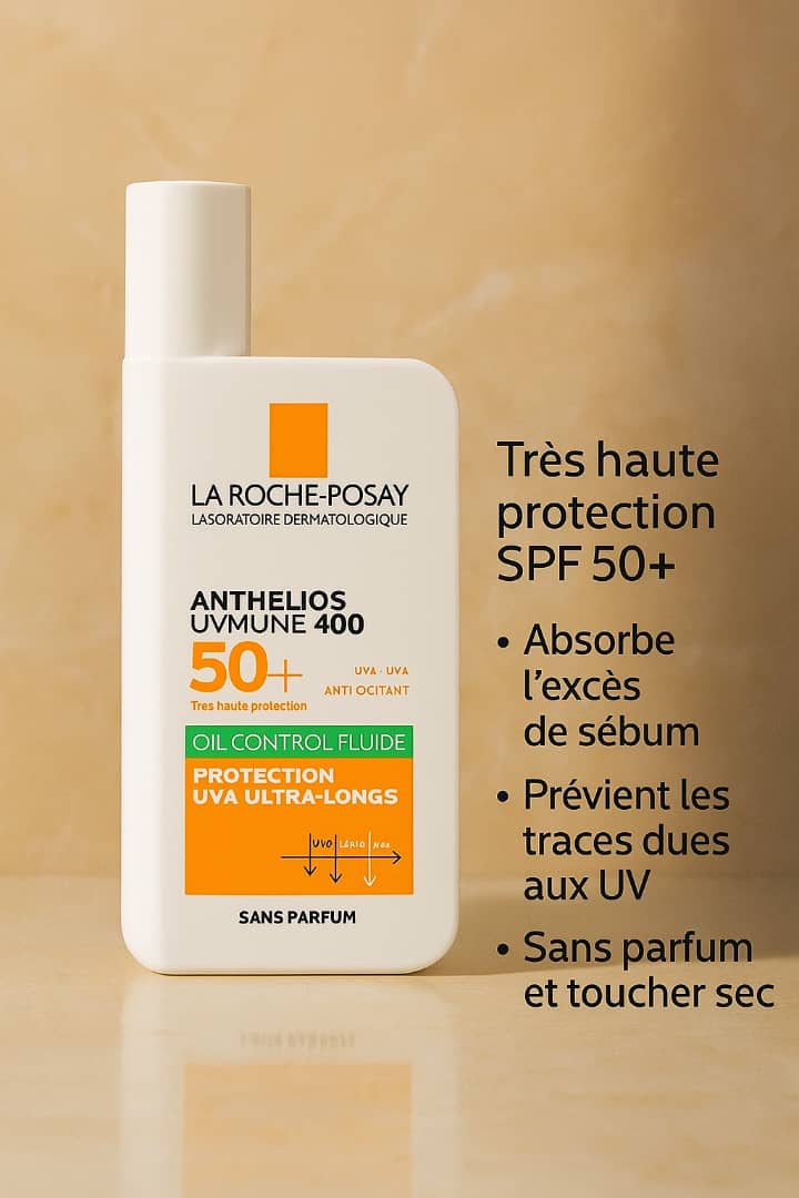 Description : Ce fluide solaire matifiant protège la peau des méfaits du soleil tout en régulant l’excès de sébum. Grâce à une très haute protection SPF 50+, renforcée contre les UVA ultra-longs (jusqu’à 400 nm), il prévient efficacement les dommages cellulaires profonds, les taches pigmentaires et le vieillissement cutané.
