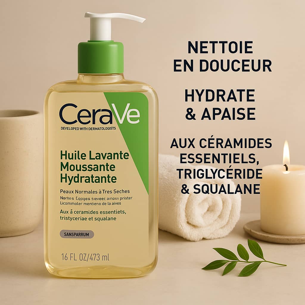 Description : Huile nettoyante douce pour peaux sèches à très sèches.