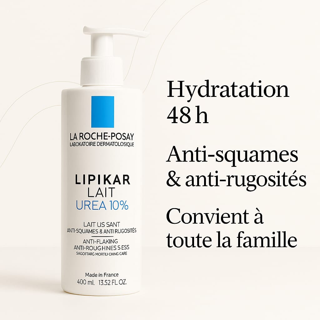 Description : Lait lissant pour les peaux très sèches, rugueuses ou sujettes à la kératose pilaire.